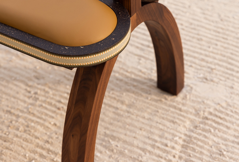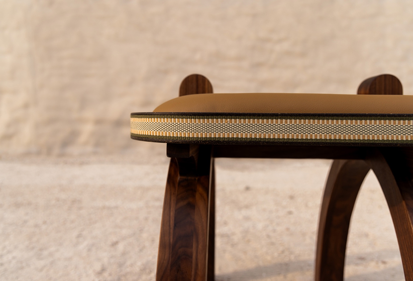 The stool is a piece that draws inspiration from practical and functional seating used by Bedouin nomads during their journeys across the desert. The striking furniture piece pays homage to the rich cultural heritage of the United Arab Emirates and also the sustainable materials born out of locally sourced raw materials and traditional Bedouin techniques.